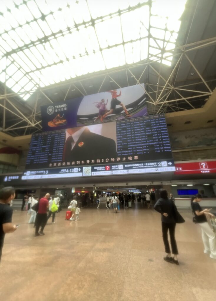 北京西駅はとにかく巨大。中に入るといきなり空港のような雰囲気で、構内に入るためにはパスポートチェックや荷物検査が必要です。また、発着数が多いことから巨大な電光掲示板に驚きます。